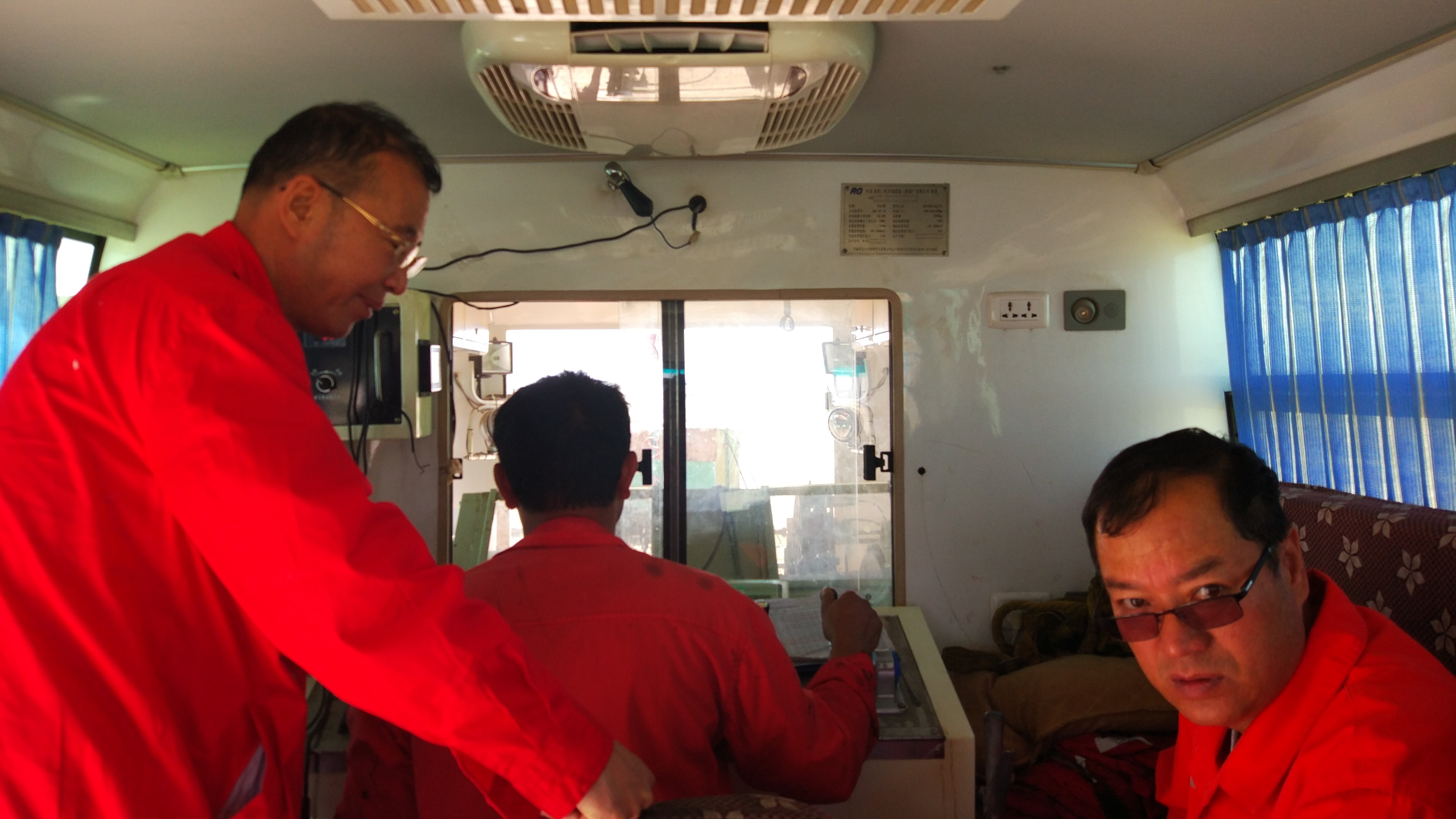 本周,分别来自不同工作岗位的六名人员,在事业部沙探片区经理彭耀明的带领下前往吉祥测试队。刚到驻地,队长白雪涛就将其分为两个班组,并在各自班长的带领下开始检查班组的车辆和测调工具,一切准备就绪就投入现场的工作中了。