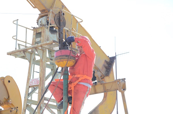 刘靖队长安装由他自己设计的井口溢流回收装置