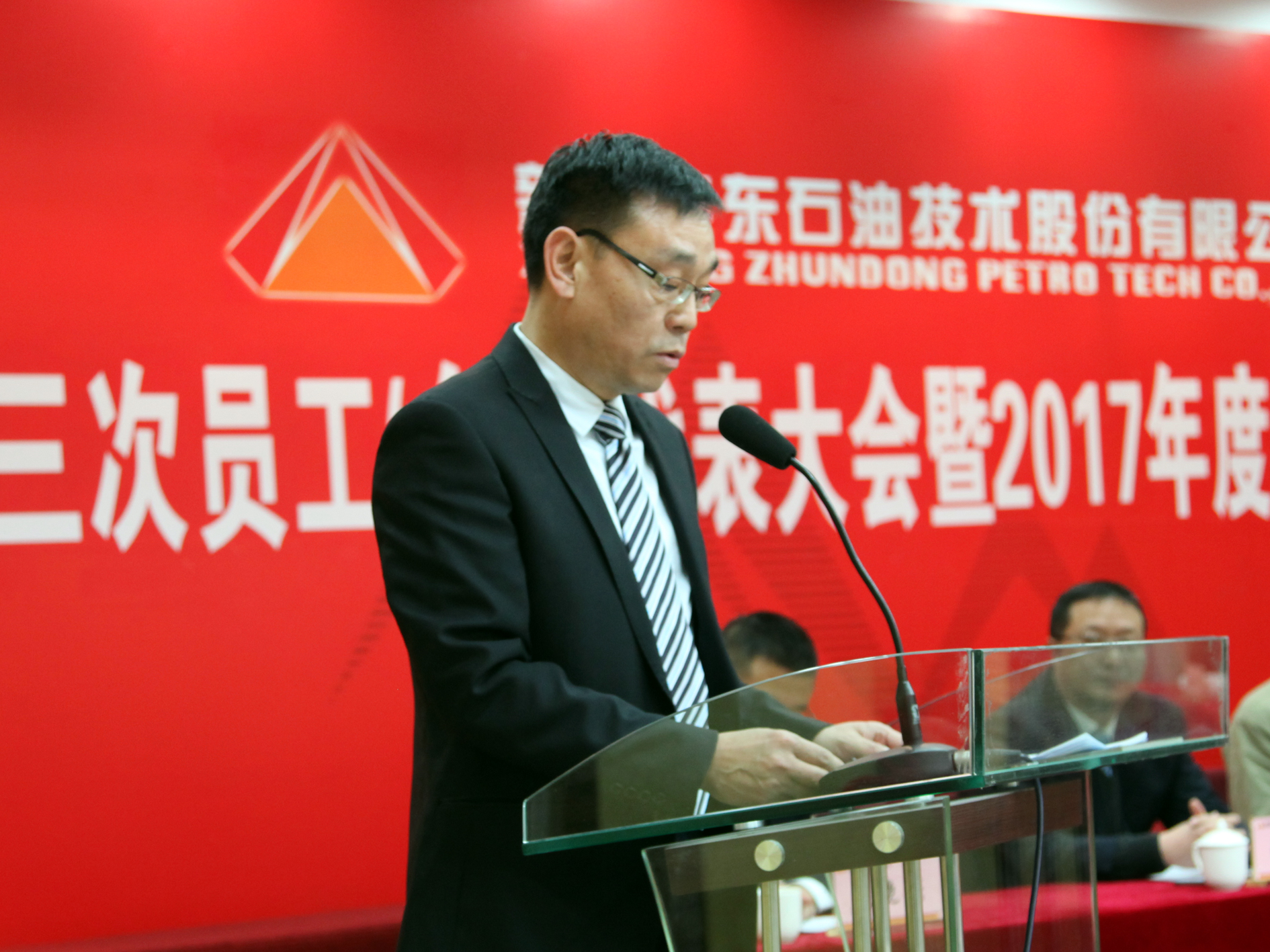 大会第一项,总经理石强作《2017年度总经理工作报告》。报告指出,2017年公司以“凝聚精神、优化结构、强化管理、提高水平、重塑辉煌”作为口号,围绕“开源节流”的总体方针,全体员工齐心协力,奋力拼搏,为完成年度任务目标作出了不懈努力,为公司止跌企稳打好了基础。并从经营指标、业务开展情况、管理工作等方面全面客观地总结了公司2017年的各项工作,深入具体地分析了公司今后发展中将面临的现状和问题。同时,报告还指出,2018年公司要继续将油田技术服务作为核心,不忘初心,团结一致、砥砺前行,勇敢面对市场的严峻形势。