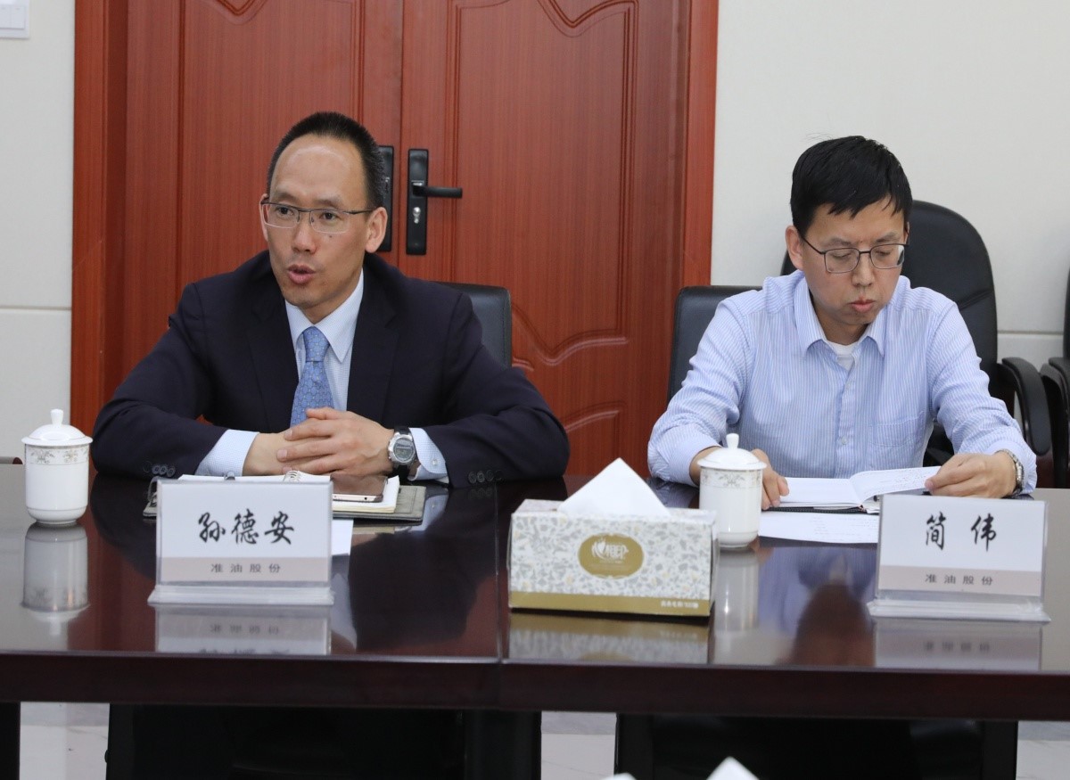 落座会议室后,双方领导首先介绍了参会人员,随后,董事长孙德安从公司2019年组织机构、人员编制、财务状况、设备运行情况、市场份额等方面向采油厂领导进行了汇报,阐述了公司近两年发展情况与存在的问题,提出了今后的发展思路。总经理简伟也表示一定会配合好采油厂的各项工作,积极主动地整改服务中存在的问题,同时瞄准采油厂在油田开发中的难点与需求,加大新技术与新工艺的研发和推广应用,为油田增产、稳产提供有力保障。