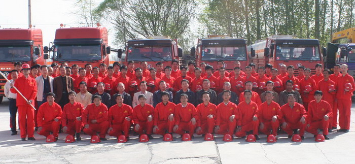 最后,公司总经理常文玖向压裂队授旗,送行领导与全体压裂队成员合影留念,出征队伍和车辆在欢快的锣鼓声、鞭炮声和祝福中,缓缓地驶出了石油技术事业部大门,踏上了远征韩城的路途。