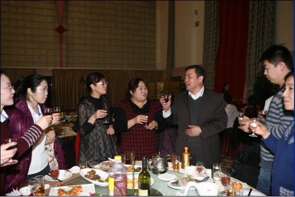 有句古话叫“无酒不成席”,今天更是如此。平时要上班,要开车,酒是不能喝的,今天有了开怀痛饮的机会,又逢如此高兴的日子,那兴奋劲儿就不必说了。秦总、常总、王总一桌一桌的敬酒,各种感谢和祝福的话语表达了领导的深切关怀,走一桌就坐下来聊一会儿,聊这一年的付出,聊这一年的困难,聊这一年的收获。公司其他领导也一一到各桌和员工们喝酒,带去问候和祝福。员工们的互敬当然更热闹,整个大厅觥筹交错,欢呼声不绝于耳。
