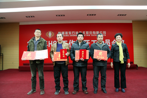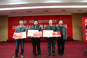 随后,安全与生产运行部经理冯述君、井下技术事业部代表通过总结各类安全生产事故案例、安全环保意识在生产中的重要性,以及结合本公司生产情况,与大家进行安全经验文化的分享和交流。公司总工程师、安委会副主任简伟在会上发表年度工作报告,年报中包含2014年安全工作总结及2015年安全工作安排,并发布了《关于调整公司安全生产委员会组成人员的通知》。汇报结束后,简总宣读了2014年度安全生产先进集体、班组和个人的表彰文件,公司工会主席陶炜,公司总工程师、安委会副主任简伟,公司副总经理胡永昌在激昂的进行曲中,分别为荣获2014年度安全生产先进个人、先进班组、先进集体颁奖。