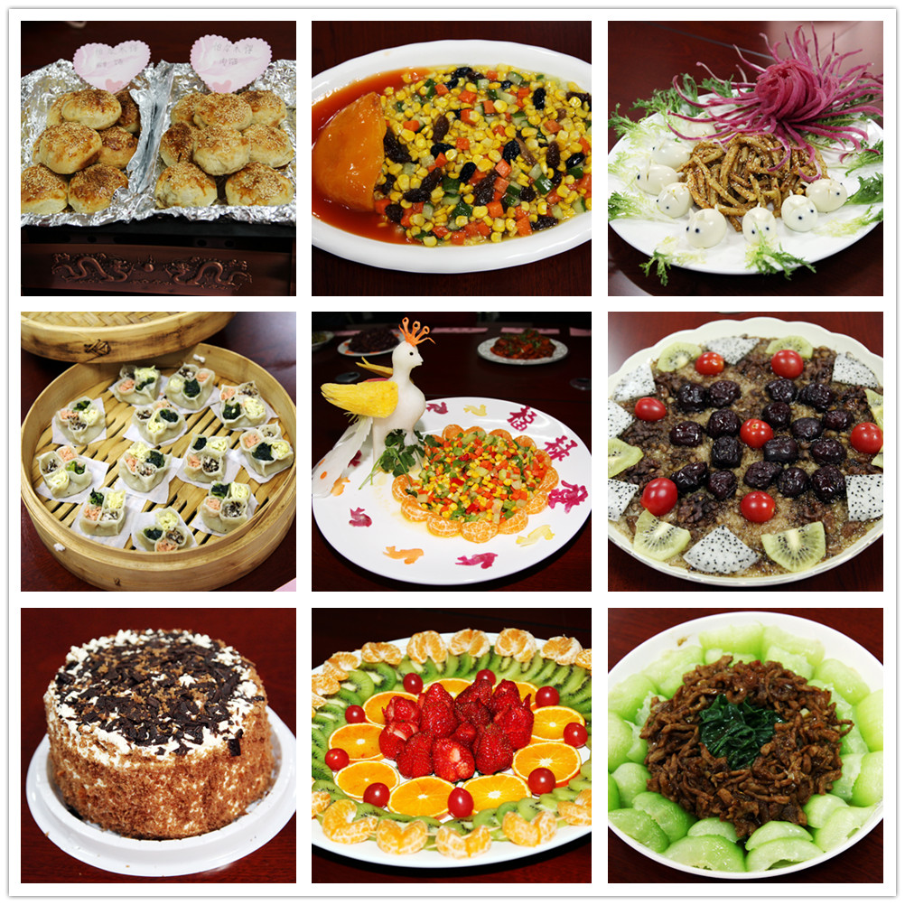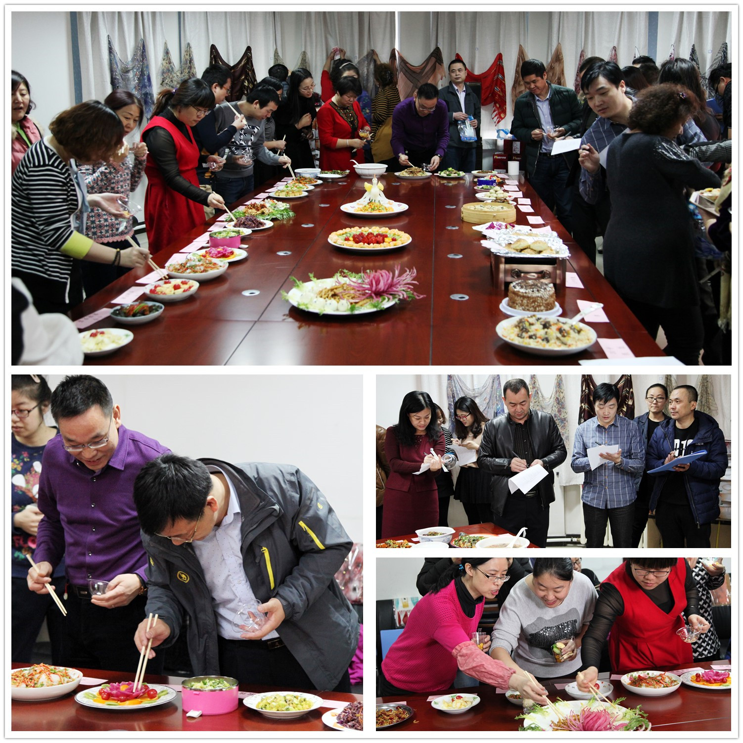 上午11时30分,公司第三会议室香味扑鼻,参加厨艺展示的美丽的"厨娘"们纷纷亮出四喜蒸饺、心中有数、糖醋鱼条、奶油康斯、百花酿豆腐、麦穗鱿鱼卷、海米油菜、椒盐蘑菇、焦烧变蛋、梅菜扣肉等丰盛营养、色香味俱全的菜肴,以及黄面烤肉、碎肉抓饭、私房水煎包、枣糕、八宝饭等主食面点,共计达35道菜品。