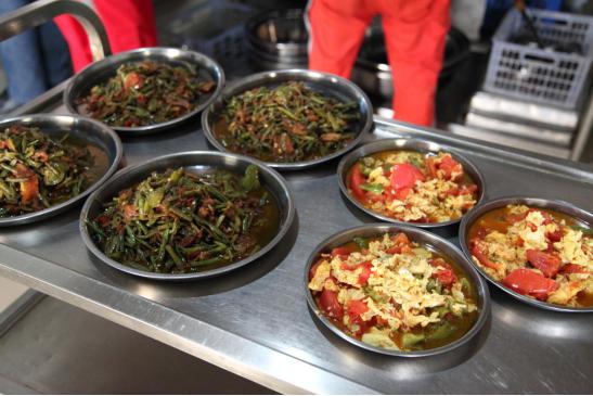 下了车,映入眼帘的是停在项目经理部院子外面排列整齐的工作车辆,一辆辆车在强烈阳光的照射下“昂头挺胸”,好像在向每一个路过的人炫耀他们的丰功伟绩;走进项目经理部的院子内,景色与院外就有了不同,院外是一副工作的景象,院内则是充满着生活气息的景象,有绿树,有种植的蔬菜,有摇椅,有篮球架,满满的惬意。通过与林树全师傅的交流,我了解到公司为了让前线员工在艰苦的前线能够生活的舒适一些,为他们盖了砖房宿舍,并在宿舍内配备了空调、电视等设施,住宿解决了,就轮到了“吃”的问题,俗话说得好人是铁,饭是钢,一顿不吃饿得慌,前线食堂每日为前线工作人员供应营养丰富、种类多样的饭菜,由于近期天气炎热,又是野外作业的高产期,为了避免工作人员中暑,食堂每日为工作人员烧降暑汤,做清火食物,公司尽心尽力解决前线工作人员的住宿伙食问题是为了尽可能让前线员工感受到如家一般的温暖,从而以更好的精神面貌去工作。